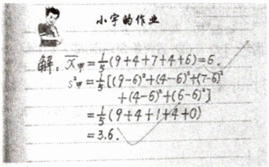 极差、方差或标准差最大数据与最小数据的差 各数据与平均数差的平方的平均数 s²=$\frac{1}{n}$[(x1−x)²+(x2−x)²+…+(xn−x)²] 方差的算术平方根