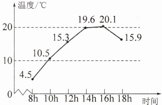 4. (杭州中考题)已知杭州市某天六个整点时的气温绘制成统计图如图所示,则这六个整点时气温的中位数是____$^{\circ}C$。