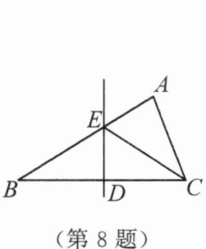 8. 如图,△ABC中,BC = 10,边BC的垂直平分线分别交AB,BC于点E,D,BE = 6. 则△BCE的周长是____.