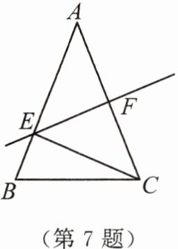 7. 如图,在△ABC中,AB = AC = 12,EF为AC的中垂线,若EC = 8,则BE的长为____.