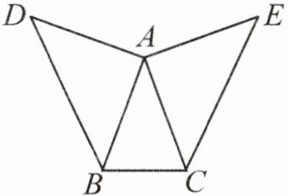 9. 如图,在△ABC中,AB = AC,∠BAC = 40°,分别以AB,AC为边作两个等腰直角三角形ABD和ACE,使∠BAD = ∠CAE = 90°.