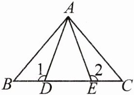 2. 如图,已知AD = AE,BE = CD,∠1 = ∠2 = 110°,∠BAC = 80°,则∠CAE的度数是()