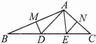 5. 如图,在△ABC中,DM,EN分别垂直平分AB和AC,交BC于D,E,若∠DAE = 50°,则∠BAC = ____°;若△ADE的周长为19 cm,则BC = ____cm.