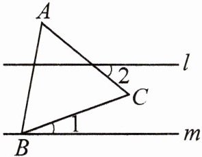 5. (咸宁中考题)如图,l//m,等边△ABC的顶点B在直线m上,∠1 = 20°,则∠2的度数为()