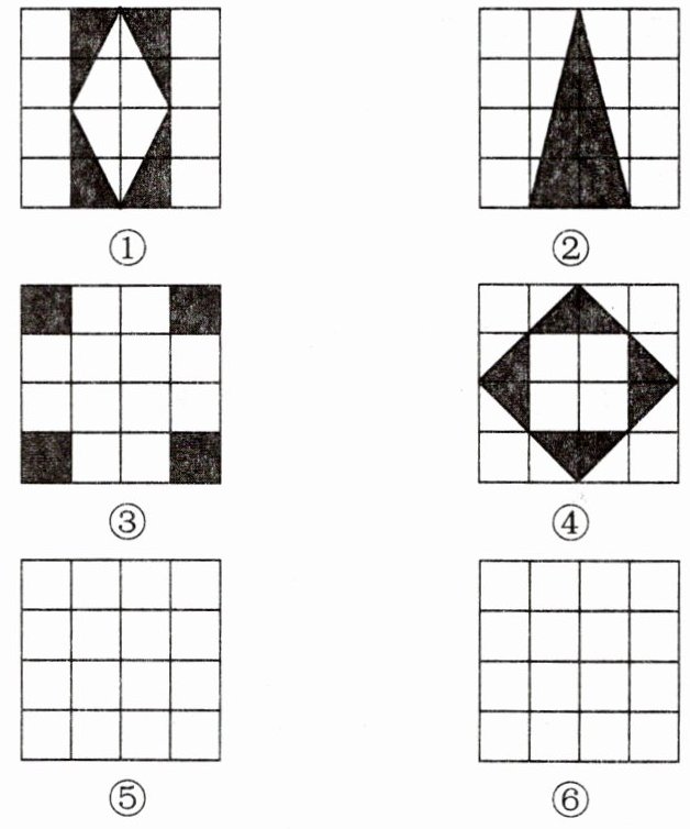 22. 观察图①~④中阴影部分构成的图案,请写出这四个图案都具有的两个共同特征:______;______。并在图⑤、⑥中各设计一个新的图案,使该图案同时具有图①~④中的两个共同性质。