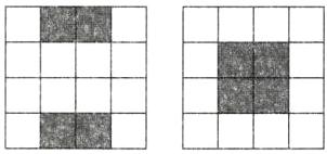 解:四个图案都具有的两个共同特征:阴影部分的面积都等于 4 个小正方形的面积;都是轴对称图形.