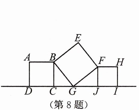 8. 如图,已知正方形$ABCD的面积为4$,正方形$FH IJ的面积为3$,点$D$,$C$,$G$,$J$,$I$在同一水平面上,则正方形$BEFG$的面积为____.
