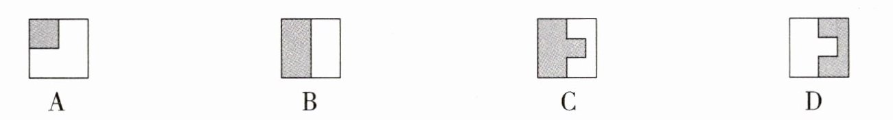 3. 下面各图中,阴影部分的周长是整个图形的周长的$\frac {1}{2}$的图形是()。