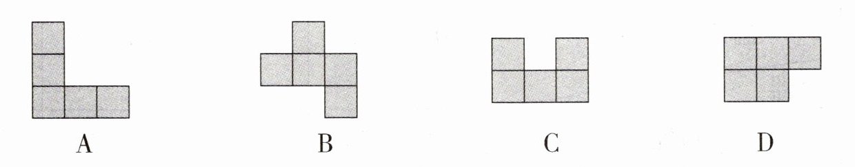 5. 下图中,能直接围成无盖正方体纸盒的是()。