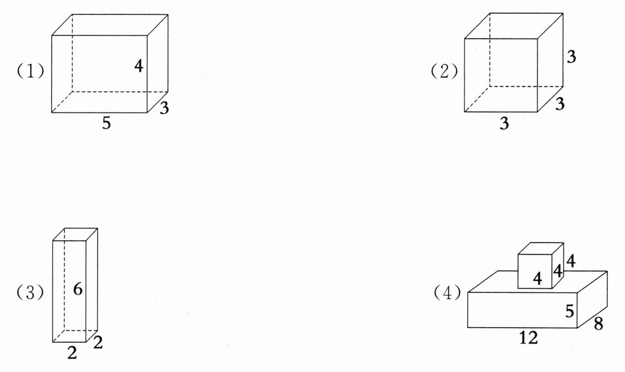 (4)表面积:$456dm^{2}$ 体积:$544dm^{3}$