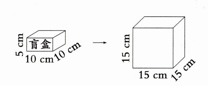 5. 为了欢迎来图书馆的小朋友们,志愿者们准备了几个棱长 15 cm 的正方体盒子(有盖),用来装长和宽均为 10 cm,高 5 cm 的长方体“盲盒”(如图),每个正方体盒子最多能装()个“盲盒”。