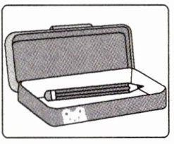 B. It's in the pencil box.