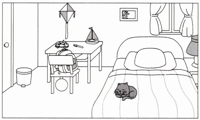 六、Mary 喜欢拍照记录自己的生活,下面是她拍摄的房间照片。判断下列句子与图片是(T)否(F)相符。