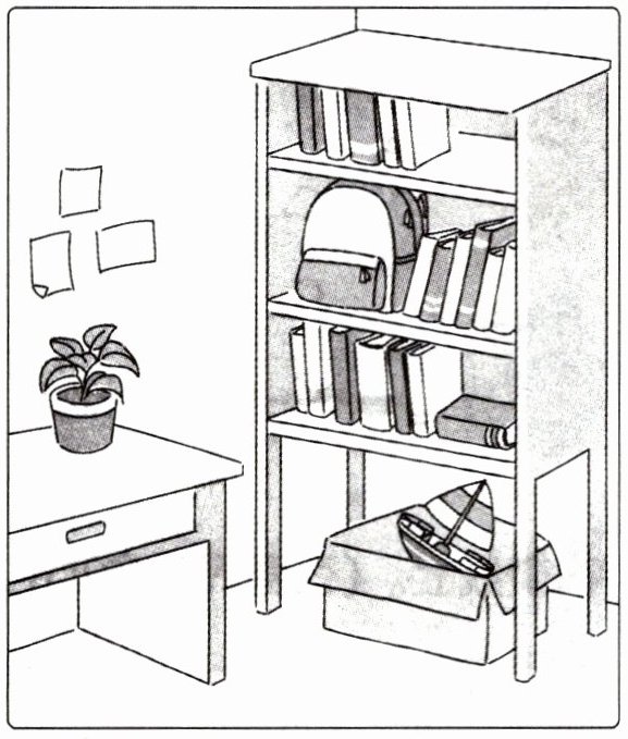Hello, everyone! Welcome to my room. This is a tall ____. There are ____ books on it. I like these books. You can also see my ____ on it. A box is ____ the shelf. I put my ____ in it.