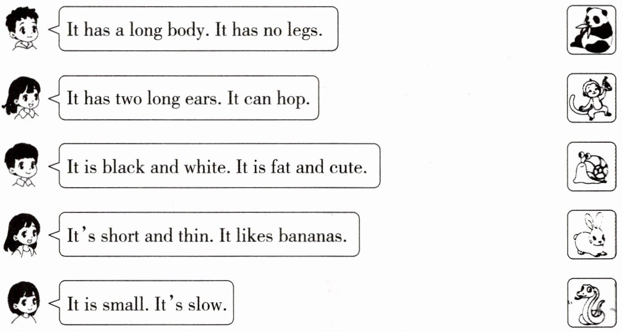 七、同学们描述了在动物园看到的动物。你能猜出下列句子描述的分别是什么动物吗?将句子与对应图片连线匹配。
