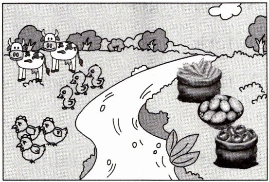 Those are cows. They're strong and fat. Those are ducks. They're small and cute. These are potatoes. They're big. These are tomatoes. They're red. They're yummy.