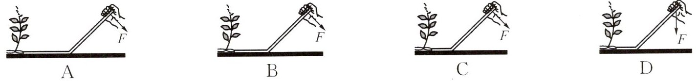 C 解析:若拔除同一植株,则阻力相同,根据杠杆平衡条件可知,施加的动力最小时动力臂应最大,阻力臂应最小,C符合题意。