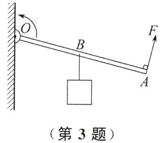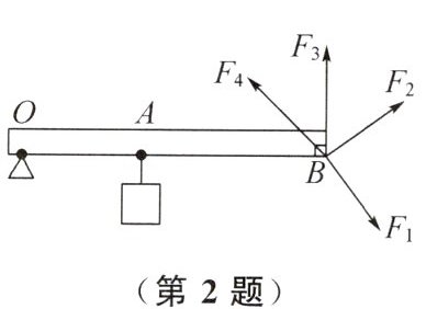 C 解析:由题图可知,动力 $F_{3}$ 与杠杆垂直,则动力 $F_{3}$ 对应的动力臂就是 $OB$,它是最长的动力臂,由杠杆平衡条件可知,在阻力和阻力臂都一定的情况下,动力臂越长,动力越小,因此 $F_{3}$ 为最小的力。