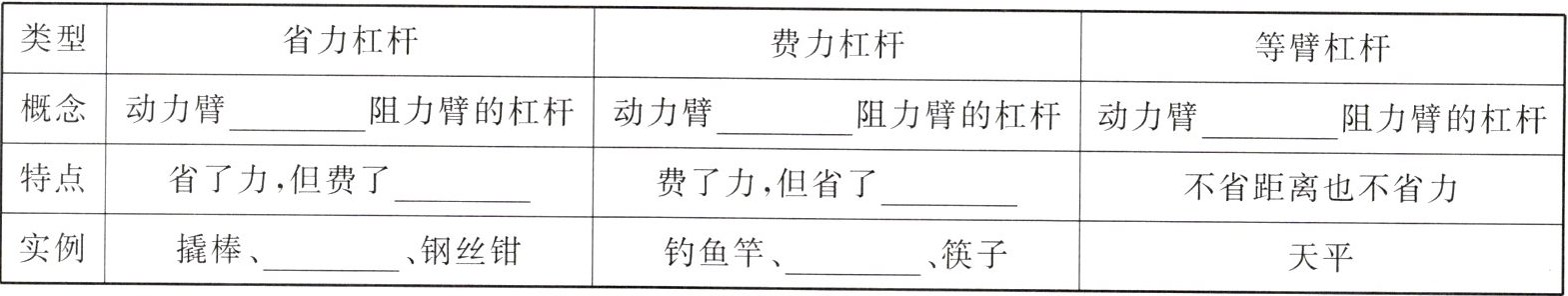 2. 杠杆的平衡条件若用比例式表示,可以写成$\frac {F_{1}}{F_{2}}= $____,该式表示杠杆平衡时动力臂是阻力臂的几倍,动力就是阻力的____.既省力又省距离的杠杆是____.