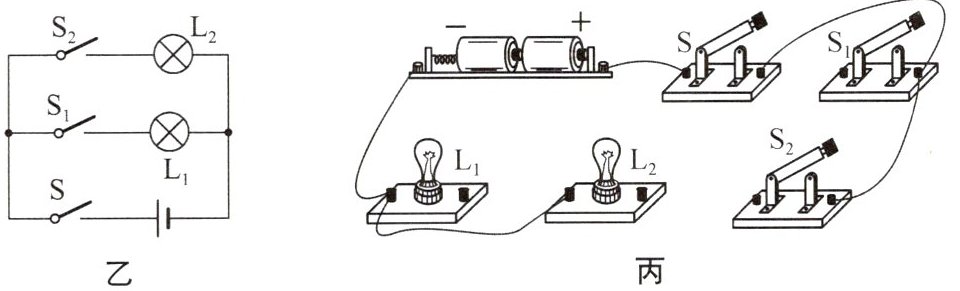 (2)①由题图乙可知,两个灯泡并联,开关S在干路上,开关 $ S_1 $ 和灯 $ L_1 $ 串联,开关 $ S_2 $ 和灯 $ L_2 $ 串联,如答图所示.
