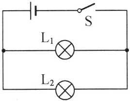 B 解析:由题图可知,灯$L_{1}$、$L_{2}$并联,灯$L_{1}$不亮,而$L_{2}$正常发光,因此灯$L_{2}$、开关S都没有故障,可能是灯$L_{1}$断路或短路;若灯$L_{1}$短路,则电源被短路,灯$L_{2}$也不亮,会烧坏电源,与题意不符,所以只可能是灯$L_{1}$断路,此时$L_{2}$所在支路不受影响。