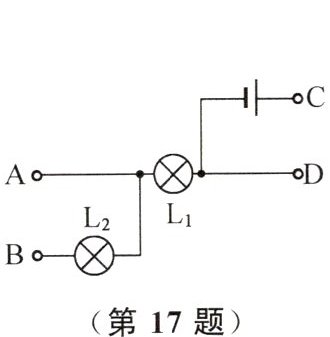 17. 如图所示,A、B、C、D是四个接线柱,要使$L_{1}$、$L_{2}$并联,应用导线分别连接____两个接线柱和____两个接线柱。