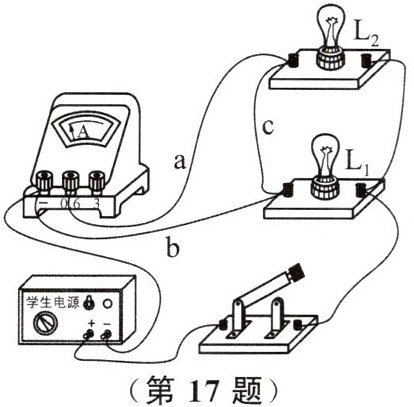 17. 如图所示是小明在练习测量电流时连接的电路,电路的连接存在错误,下列操作及说法正确的是 ()
