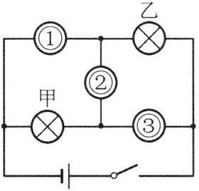 20. 如图所示,甲、乙两个小灯泡连接在电路中,①②③是电压表或电流表,闭合开关后 ()