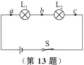 13. 如图所示,在探究串联电路中电压的规律时,小芳同学用电压表测出a和b、b和c、a和c之间的电压分别为$U_{ab}= 3V$、$U_{bc}= 3V$、$U_{ac}= 6V$.在表格中记录数据后,下一步应该做的是 ()