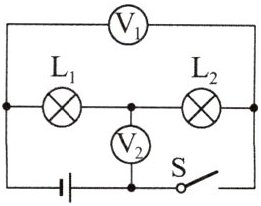 D. 断开开关,将两个电压表都换成电流表,则$L_{1}与L_{2}$并联