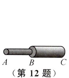 12. 小明看到外面的高压电线比自家的电线要粗很多,于是就找来两根粗细不同的电线组装在一起,探究经过电线的电流大小,如图所示,通过AB的电流$I_{AB}$和通过BC的电流$I_{BC}$的大小关系是 ()