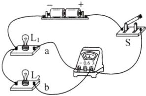 (3)将导线b改接到电流表“ - ”接线柱或灯$L_{1}$的右端接线柱上