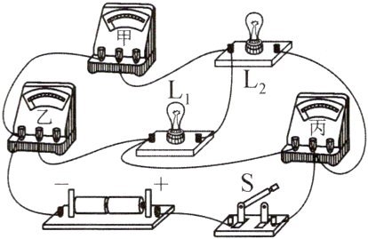 6. (2023·济南)如图所示的实物电路由电源、开关S、两个小灯泡$L_{1}$、$L_{2}$和甲、乙、丙三个电表(电流表或电压表)组成.闭合开关S后,两个小灯泡$L_{1}$、$L_{2}$均能发光.下列关于甲、乙、丙三个电表的判断正确的是 ()