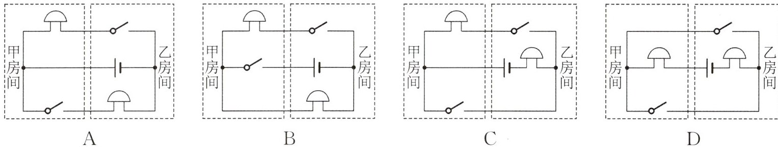 A 解析:根据题意可知,两个电铃能独立工作,是并联的,甲房间的开关与乙房间的电铃串联在一条支路中,乙房间的开关和甲房间的电铃串联在另一条支路中.