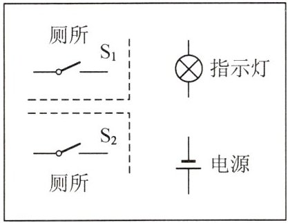 解析:由题意可知,当两间厕所的门都关上时,车厢中的指示灯才会发光,说明两个开关串联,共同控制指示灯.