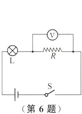6. 在如图所示的电路中,闭合开关$S$,灯$L$不亮,电压表有示数。已知电路中各处均接触良好。($R$为电热丝,阻值与灯泡相近)