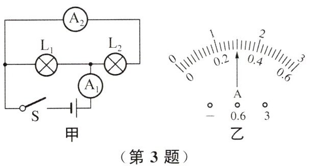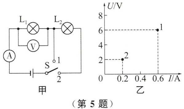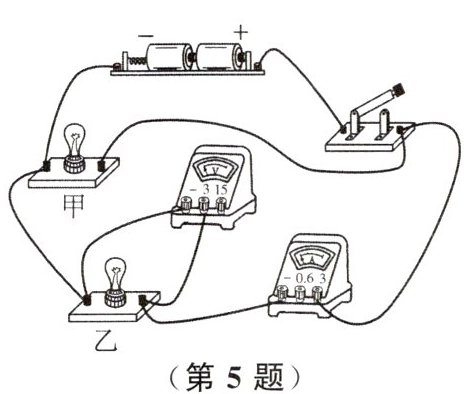 5. 在如图所示的电路中,闭合开关,甲、乙两个灯泡均发光,过一会儿,其中一个灯泡突然熄灭,但两个电表指针仍明显偏转。造成此现象的原因可能是()