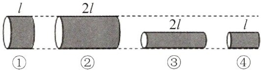 C 解析:四段电阻丝由同种材料制成,①、②的粗细相同,但②比①长,则②的电阻大于①的电阻;③、④的粗细相同,但③比④长,则③的电阻大于④的电阻;②、③的长度相同,但②比③粗(即③的横截面积小),则③的电阻大于②的电阻,比较可知,电阻最大的是电阻丝③.C正确.