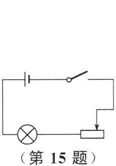 15. (2024·吉林)某调光台灯简化电路图如图所示,电源电压保持不变. 为使台灯变亮,滑片应向____端移动. 台灯工作一段时间后,发现无论怎样调节滑片,台灯一直很亮且亮度不变,电路中的故障可能是滑动变阻器____.