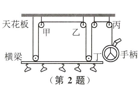 2. 如图所示为家庭手摇升降晾衣架的结构图,当顺时针摇动手柄时,横梁上升。晾衣架上的滑轮属于动滑轮的是()