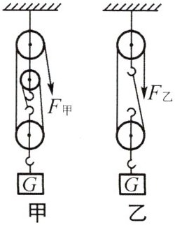15. 用相同的滑轮和绳子分别组成如图所示的滑轮组,把质量相同的物体提升了相同的高度,则所用的力$F_{甲}、$$F_{乙}的比值和绳子自由端移动的距离s_{甲}、$$s_{乙}$的比值分别是(不计摩擦、滑轮重及绳重)()