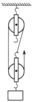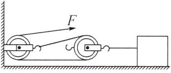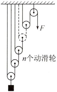 20. n个动滑轮和一个定滑轮组成滑轮组,每个动滑轮的质量与所悬挂的物体质量相等。不计一切摩擦和绳重,滑轮组平衡时拉力大小为F,如图所示。若在图中再增加一个同样质量的动滑轮,其他条件不变,则滑轮组再次平衡时拉力大小为()