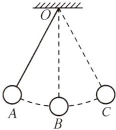 7. 如图所示,让小球从 $ A $ 点由静止释放,小球从 $ A $ 点向 $ B $ 点摆动的过程中,小球