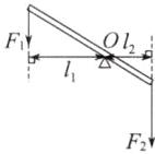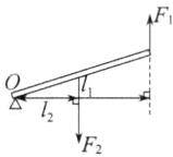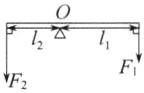 解析:过支点O作垂直于$F_{1}$作用线的垂线段,即为动力臂$l_{1}$;过$l_{2}$的右端点作垂直于$l_{2}$的阻力$F_{2}$,力的作用点在杠杆上.