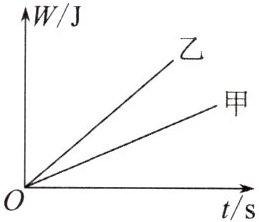 16. 如图所示是甲、乙两个物体做功与所需时间的关系图像.由图可知,甲物体的功率$P_{甲}与乙物体的功率P_{乙}$的大小关系是 ()