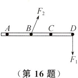 16. 如图所示,一根轻质硬棒在$F_{1}$、$F_{2}$两个力的作用下静止不动,则硬棒的支点为杠杆上的 ()