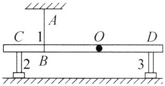 18. 如图所示,一根质地不均匀的杠杆的重心为O点,将杠杆通过绳1悬挂于A点,2、3为两个支架,在绳与两个支架的作用下,杠杆静止,此时绳与支架均对杠杆有弹力作用.下列操作仍能使杠杆保持静止的是 ()