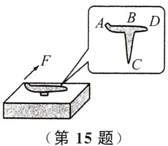 15. 如图所示的这款图钉来自一个初中生的创意,翘起部分为我们预留下施力空间.当拔起图钉时,将图钉看作杠杆,其支点为 ()