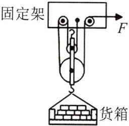 (1) 由题图可知,承担物重的绳子段数为4,因为不计钢丝绳的重力和机械间的摩擦,所以$4F = G + G_{动} + G_{箱}$,即$4 \times 1000N = 3700N + G_{动} + 200N$,解得$G_{动} = 100N$。