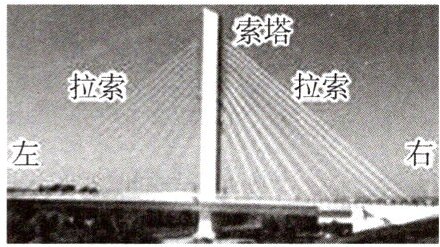 3. 斜拉桥比梁式桥的跨越能力强,我国已成为拥有斜拉桥最多的国家.如图所示为某斜拉大桥,索塔两侧对称的拉索承受了桥梁的重力,一辆载重汽车从桥梁左端匀速驶向索塔的过程中,左侧拉索拉力大小